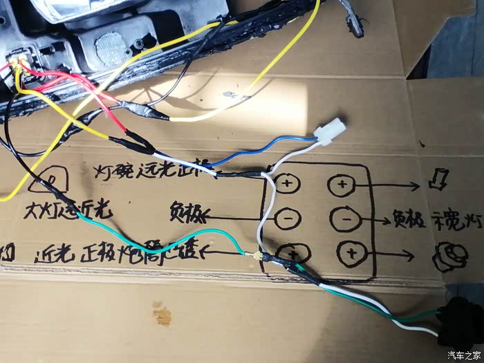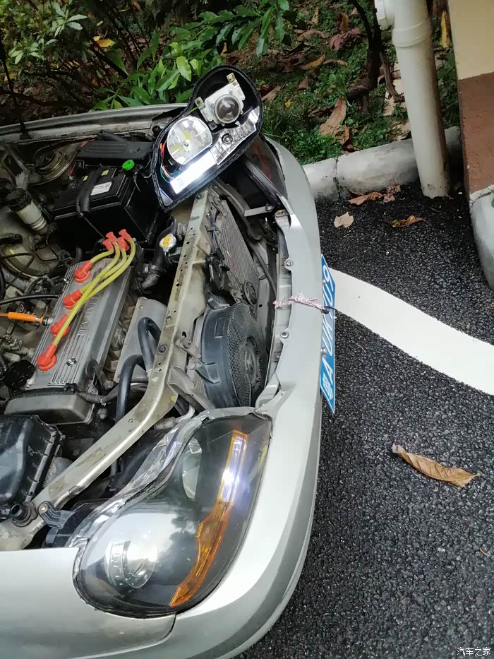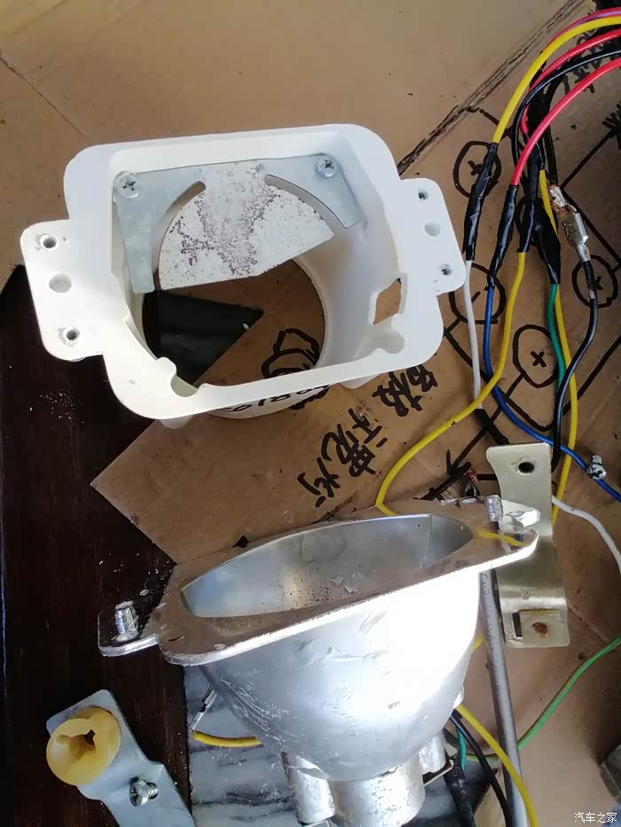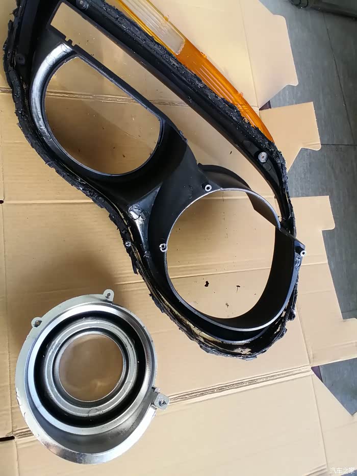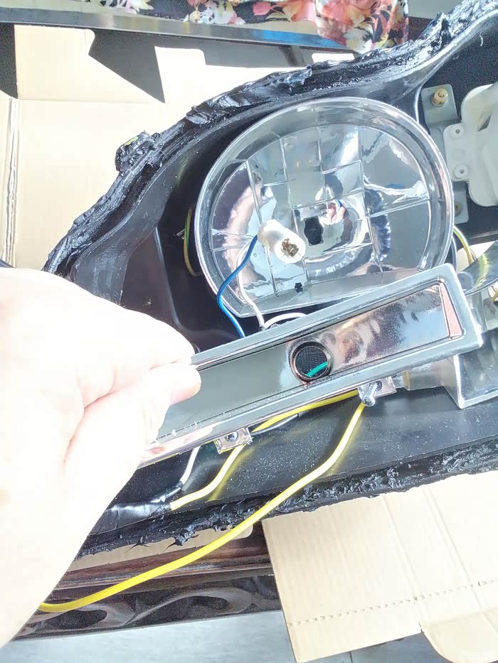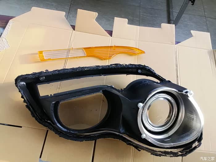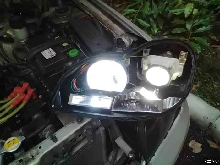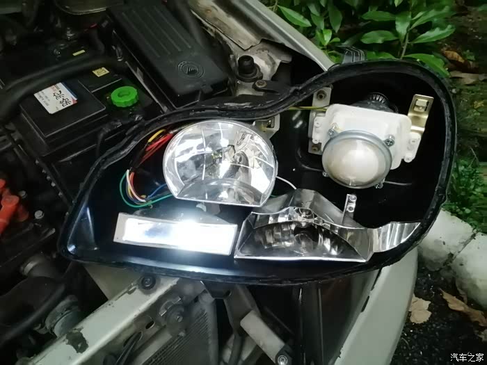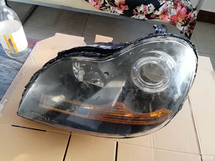完完全全拆解,更换电线,换LED灯泡,灯罩重新粘贴,大灯插头更换新的。一次点亮,非常亮。开心!