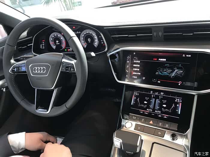 车身侧面,新A6L的车顶线条更加平滑,车侧线条也很犀利,听说车身尺寸增加了12mm,我最满意的就是在内饰方面,一进入驾驶舱,这就是个小奥迪A8啊,12.3英寸全液晶仪表盘信息显示丰富,用大屏幕取代了原来繁琐的物理按键,三块大屏简洁大气,视觉效果和实际体验更加出色,整体内饰充满科技感,豪华感,销售顾问介绍新车还配备?MMI多媒体导航系统、驾驶辅助系统和奥迪预安全系统等配置,性能非常出众,啥也不说了,也是相当满意!