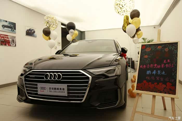 回到展厅,再看这车 依然帅气,但现车还只有一台,加上媳妇说这个颜色很喜欢,再看两圈也觉的挺顺眼的,果断入手,销售顾问说是店面第一台新A6L,但想想这个幸运的第一台,也希望给明年带来个好彩头,(主要也是真心喜欢这个车)接下来店面的工作效率也是相当高了,订单签完,财务刷款,验完车,立马买的临牌,接下来就是隆重的交车仪式!