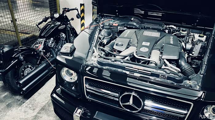 当时的G63还不像现在这么贵,用不着加价,后来想想,感觉自己买的时机还挺不错的。14款的G63是5.5T涡轮增压的发动机,说实话和老款的机械增压发动机和现在的4.0T相比,我倒是最喜欢这款5.5的涡轮增压,倒并不是因为我拥有它所以才这么说,是因为我觉得它的排量大,声音更原始些,而且本身的改装潜力也会更大些,虽然我不会改装它,哈哈哈。这款发动机因为并没有受到任何相关法规的影响,所以在我看来是比较原始粗狂的,和大G本身的气场更吻合。后面出的4.0我觉得多多少少都是受到了排放法规的影响。再加上后来的G为了追求舒适性选择了多连杆,所以说这一代不管从发动机还是底盘上来说我觉得都会更纯粹,更原始,更野一些。