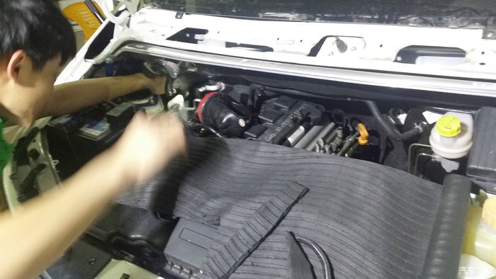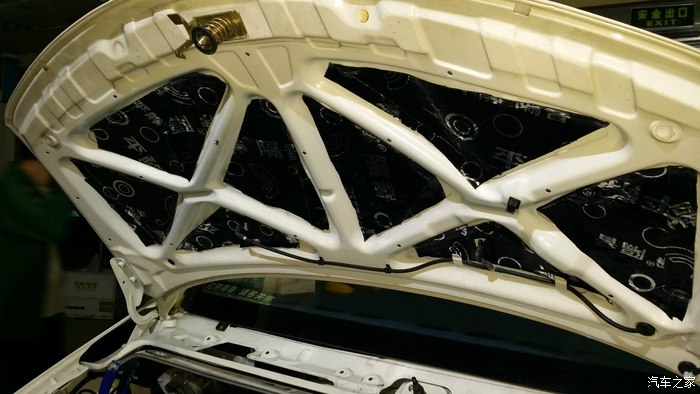不死心!继续弄降噪,昨晚去平静隔音,问老板能静百分之几?老板很踏实的人,(见面后确实是厚道踏实人),不敢说能达到什么效果,每个人的要求程度也不一样,做了试试就知道了,我们收费不贵的,你可以到店来看看。试试看吧,我一直认为几块棉花能隔多少音。到店里,老板推荐防火墙,就是在发动机舱里,仪表方向贴防火墙,两侧轮子贴隔音,叶子板也贴了隔音,发动机盖也帖了隔音,让我期待已经是时刻终于来了。。。。。。点火,轰油,声音不仅小了,而且低了很多,感觉声音是从远处传来的,那么不真实,车车只能听到隆隆的。。排。。气。。管!555555