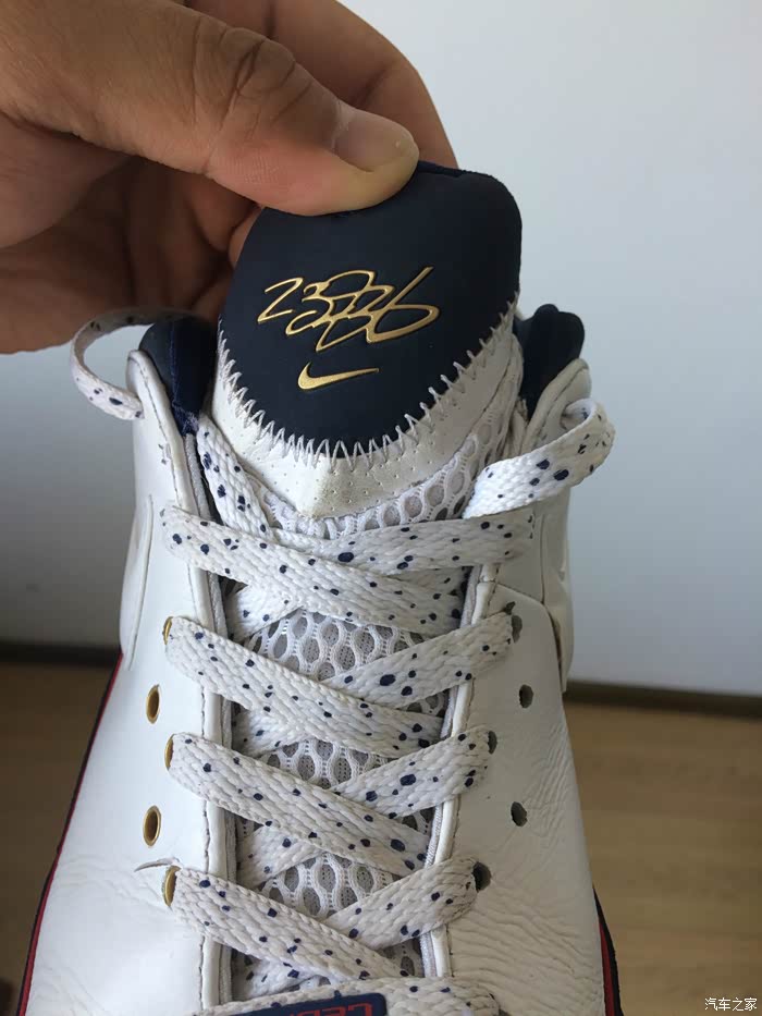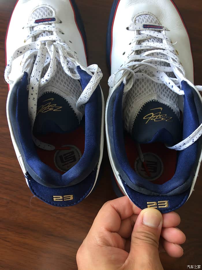 鞋帮处就是人尽皆知的LBJ23的专属logo了,金色凸显皇帝君临天下的气魄,字母与奥运配色相得益彰。