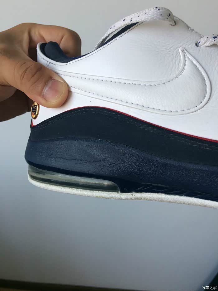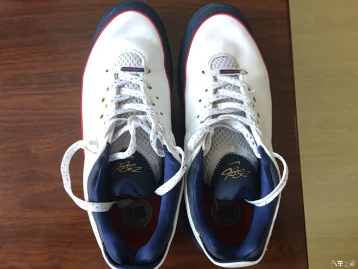 这双鞋子的配色是奥运配色,也就是美国男篮的配色,白色为主的鞋面,配上了藏蓝色,就不会有那种头重脚轻的感觉,红色的走线更让这双鞋子有了不小的动感。