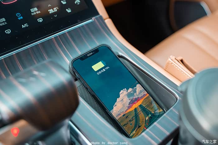 自从买了这个车,再也不用担心上车后手机无处安放,专门设计的带有坡度的支持无线充电的凹槽,响应很灵敏,只不过充电速度比较慢。