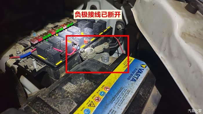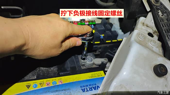 因为后续着急用车,所以当天晚上就开始动手尝试维修。工具就是一个拆卸蓄电池负极螺丝的套筒扳手。
