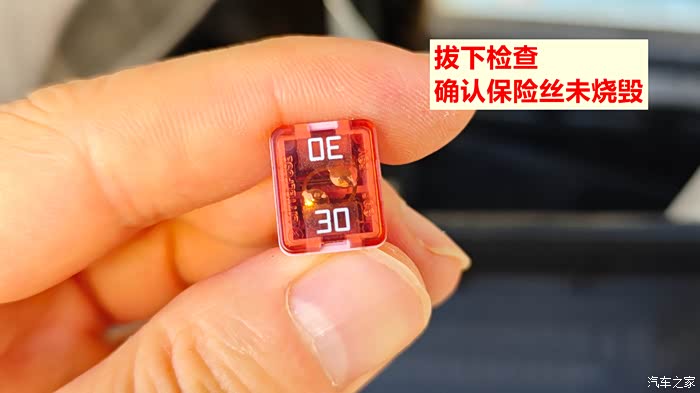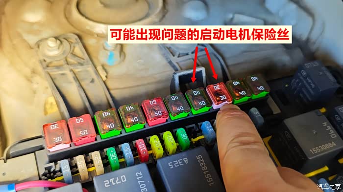 点火保险和继电器在靠近主驾的前边,打开保险的盖子,先对照盖子背面找到点火保险丝,拔出来后,确认没有烧毁。