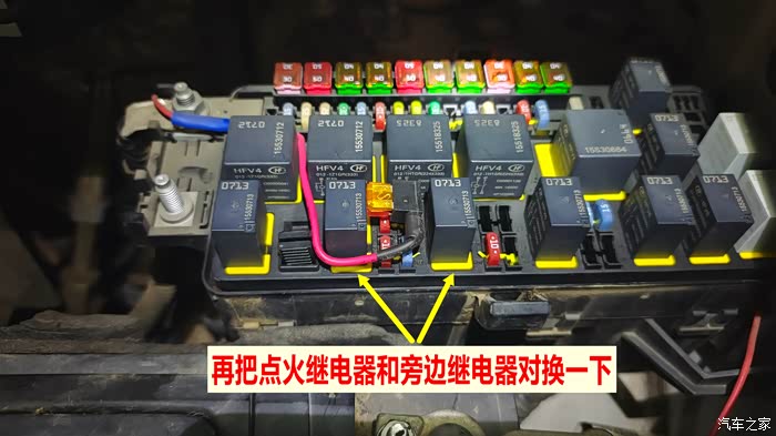 再把点火继电器和旁边继电器都拔下来,对掉下位置后插好,重新打火,发动机依旧没有反应,基本可以排除是保险和继电器的问题。