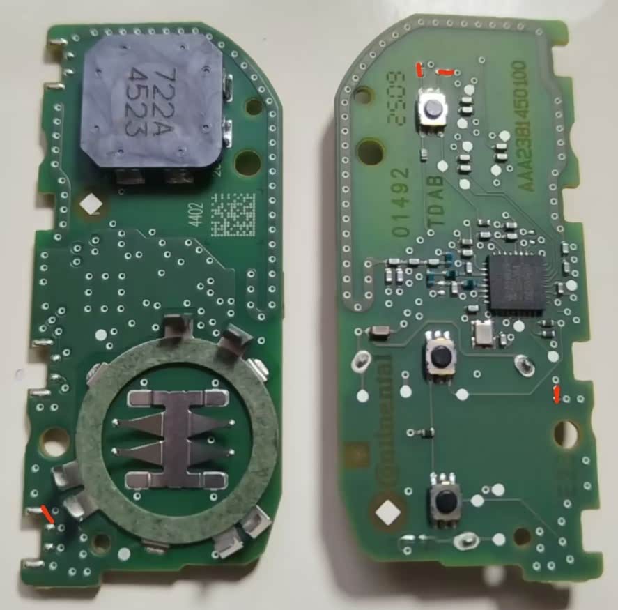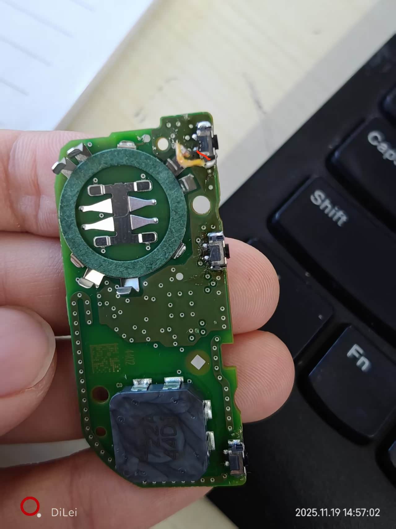 因为领克的钥匙按钮是在侧边,L6 emi的钥匙按钮在正面,需要稍微改动一下电路板,并且焊接一下微动