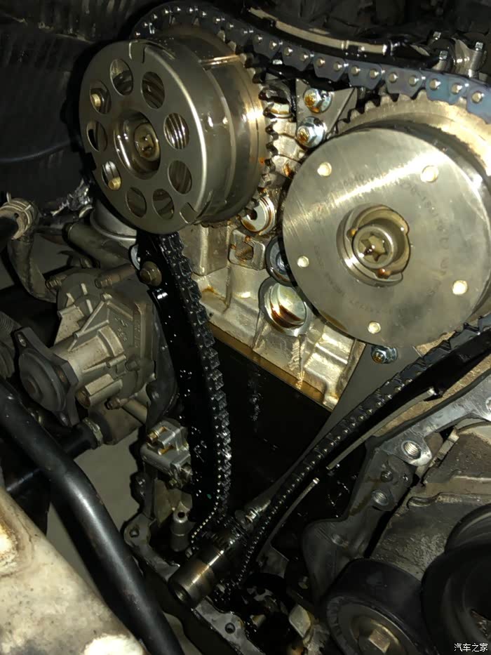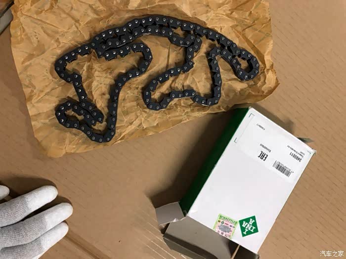一个维修的师傅听我发动机,说是正时链条可能拉长了,咨询了下维修师傅,不用吊装发动机就可以更换正时链条,所以呢,我就想着自己换了,练练手,再认识下正时链条啥样的,网上买的正时六件套,收到货后觉得网上的备件太差,只有链条还是看起来正品,其他的都是外部工厂的零件,确实和原厂的没法比。在此也建议大家,更换重要部件还是去4s吧,否则问题多多的。给大家展示下美图