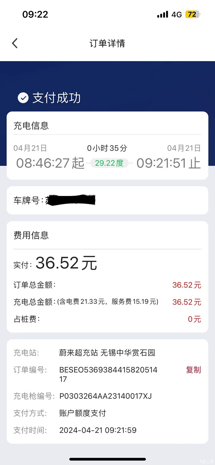 不过这肯定不是我的考拉充电速度的极限,我曾经在其它蔚来超充站也充过电。当时气温至少要低10度,充电42.61度,用时34分钟。比起这次,还少充1分钟,但是多充了13.39度电。可惜当时没有做记录,不然可以比较一下。后续还会继续用其它品牌的超充桩去给考拉充电,然后继续和大家分享。