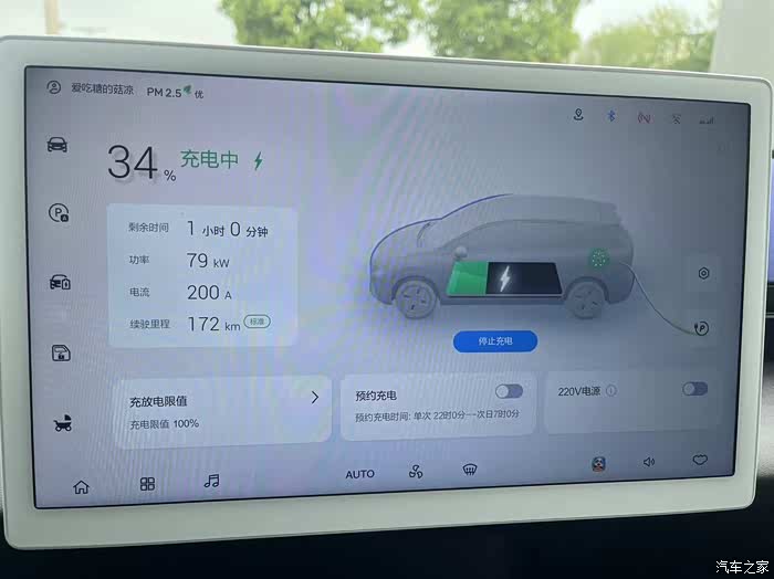 简单分析一下,充电功率出现了不断下降的情况。充电至80%时,充电情况和之前在昊铂充电情况基本一致(昊铂充至79%时,充电功率24kw,电流63A)。这点可以理解,现在很多新能源车到80%,充电速度都会变慢。