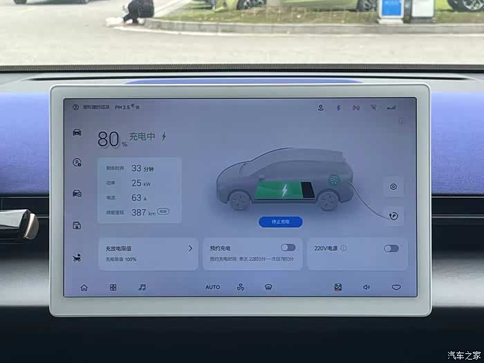 当电量充至80%时,充电功率降低至25kw,电流降低至63A。