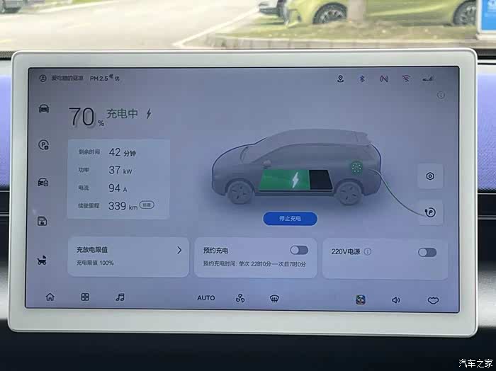 当电量充至70%时,充电功率降低至37kw,电流降低至94A。