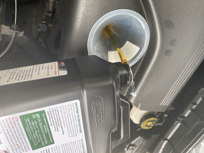 新机滤我是直接用手拧紧没有用扳手 添加新机油 一桶是3.78升正合适