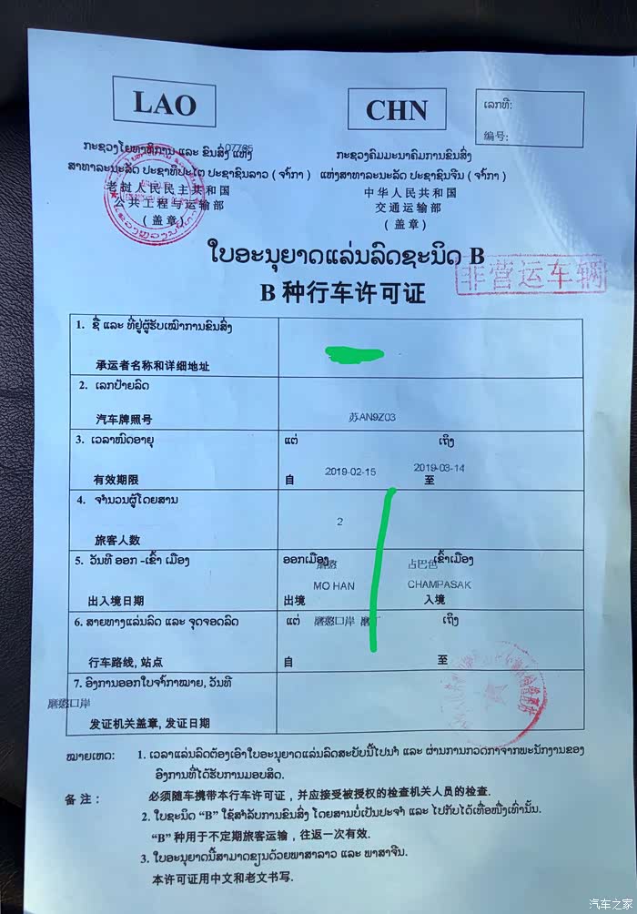 与国内相配套的老挝行车许可证