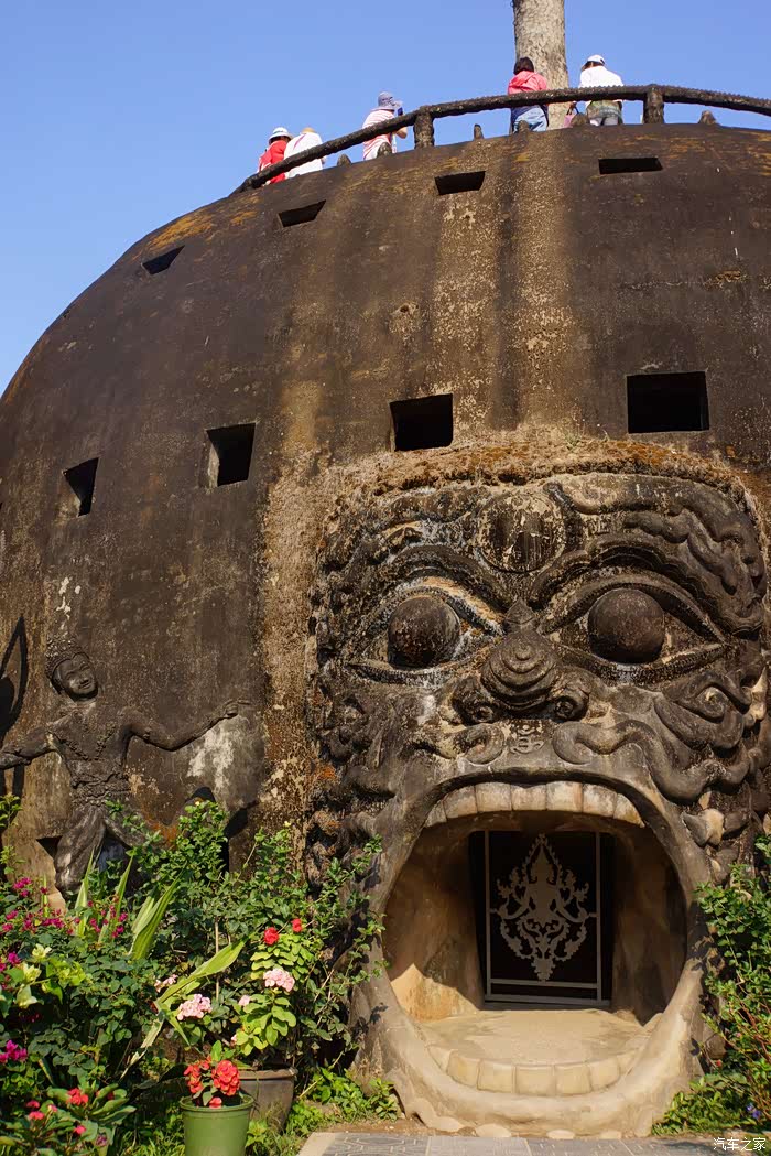 除了这些雕像,公园内还有一座奇妙的圆身层塔建筑,像一个巨大的南瓜,内部共有三层,从一层到三层分别代表着地狱、人间和天堂,而且每层墙壁上都有一些雕刻画像,象征着该层所代表的地方,最上层还有一座金佛坐镇意味着来到天堂。
