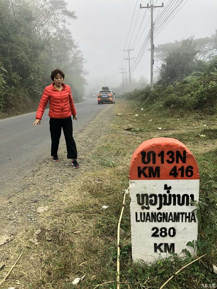 和老挝的4号公路及量程碑留影