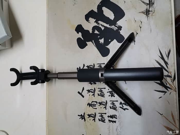 自拍杆手握处可分开三瓣,配合底部防滑脚垫。