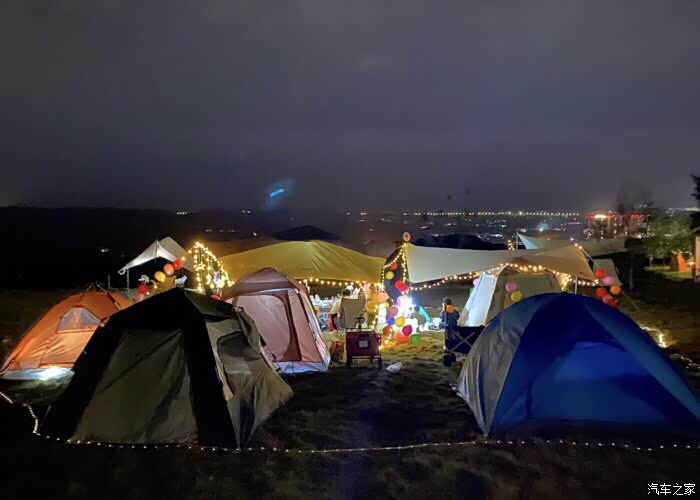 晚夜幕降临,大家搭起了帐篷,并在帐篷的周边挂起了彩灯。