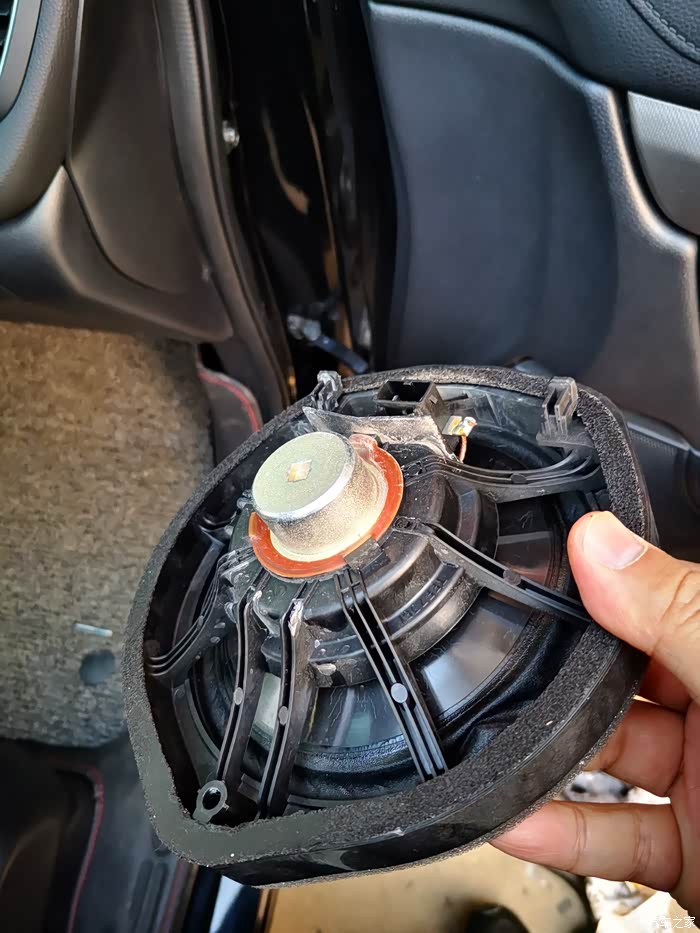 原厂喇叭,除了后面磁铁小一些,其他还行,但有些大神说:现在早已经不是看磁铁大小,决定喇叭音质的时代了,讲究的是技术!