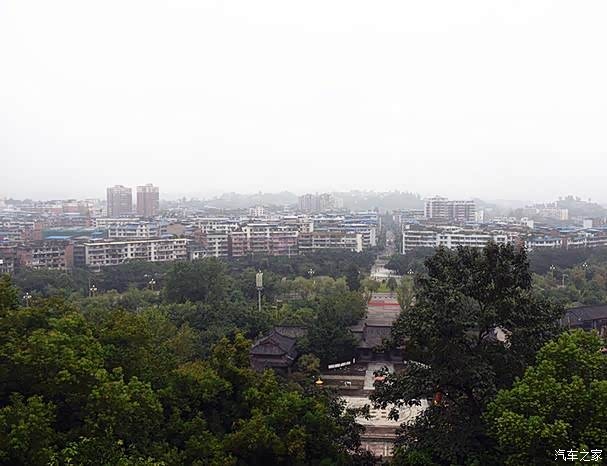 三层阁楼的观景台上可以一览大佛寺的风貌,远眺荣县城,屋顶的一片片蓝色与天空的颜色相呼应,让人有一种错觉。旭水河作为分界线,又好似把大佛寺和荣县老城区划分开来,一边是城市,一边是森林。
