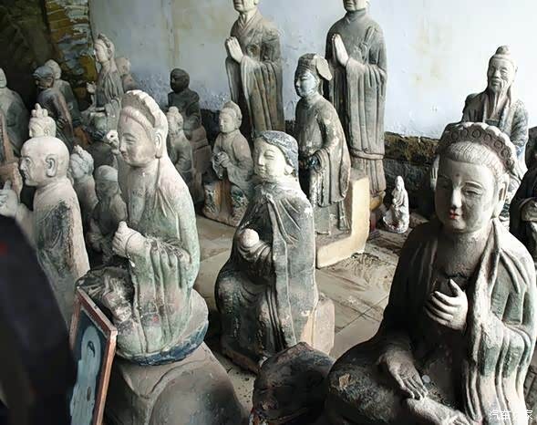 而达摩造像的偏殿内置放这很多罗汉的石像生,我想应该是从别处搬运来的。