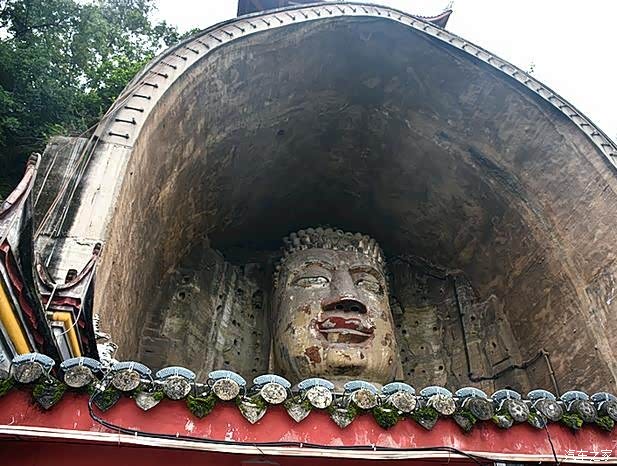 转入大佛殿内,沿两边的楼梯向上攀沿,俯瞰大佛的脚趾,我去,这多少年没有洗脚了,连同旁边的观音娘娘一样,大佛的脚趾黑乎乎的,表面就如溃烂一样,伤痕累累,有点像传说中的灰指甲。多亏晚上木头告诉我,荣县的大佛寺保护的不是很好。