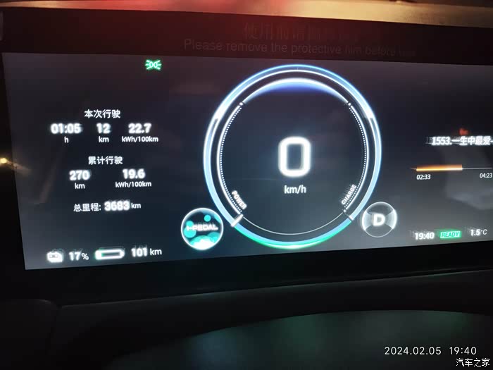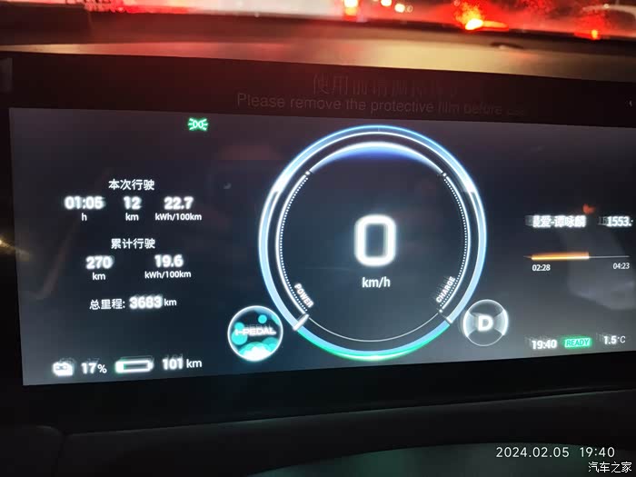 提车一个月有余目前跑了3000多公里,一直没机会试一下冬季续航能力,今天刚好要去攸县一趟,所以提前一天把电池充到95%,来回全天一共跑了270公里,有一半是高速平均时速90左右,其他是市郊道路,20到50码之间,开空调的时间也是一半左右吧,表显电耗19.5到22,还剩17%的电!冬季续航,最多也就五折吧!市区跑跑还可以太远的地方还是算了吧