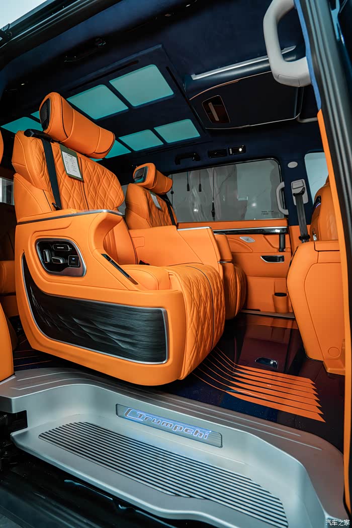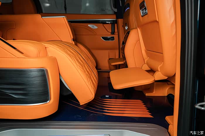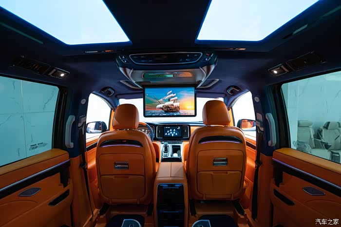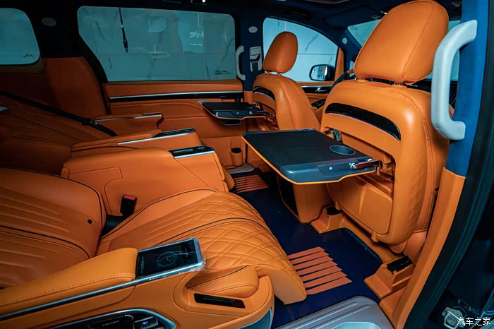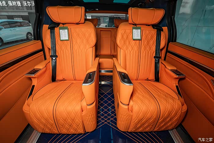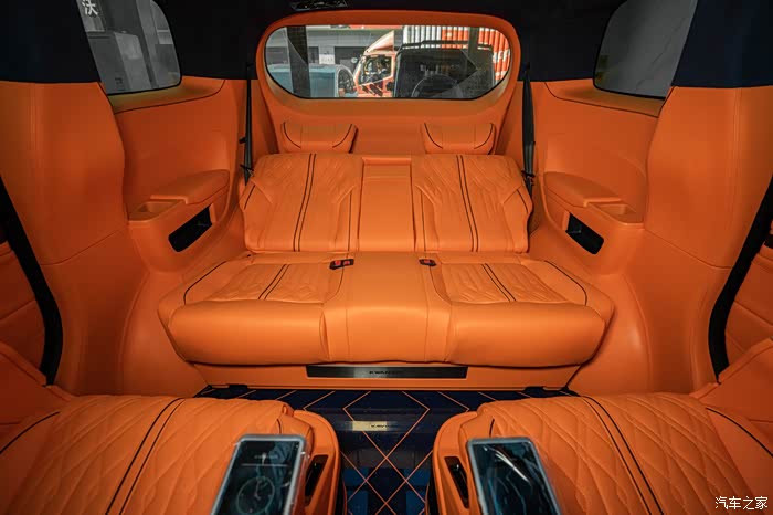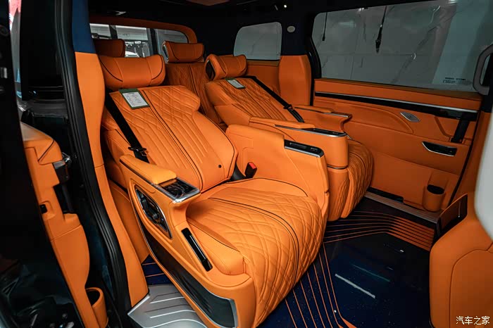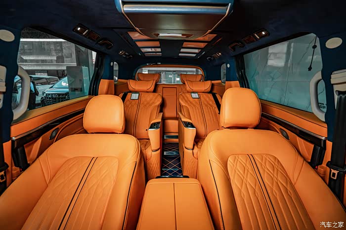 首先要改的就是内饰颜色,原厂黑色内饰全换,直接一步到位,换上了我的幸运色,最个性最有活力感的爱马仕橙,坐进车里面心情也会随着橙色变得开朗了,人都说视觉动物。全车内饰基本上都是爱马仕橙纳帕真皮包裹,包括中控台,仪表台,前门中门及三排侧板,座椅也都保持统一爱马仕橙纳帕真皮包裹着,我就想着要改一次性解决坚决不二进宫,除了内饰颜色改动之外,就是配置加装了,低配版能满足基本的要求,但是舒适性上还是差点意思,家用车还是要加装一些实用性舒适性的配置,于是中排航空座椅,小桌板,印花地板,吸顶电视,顶灯,LED铝合金踏板,全车隔音…………也都安排上了,自从改了以后,每天进车里先欣赏摆弄三分钟,越看越顺眼……改动的比较多,多的我都有点记不清了,下面大家对照着图片慢慢看吧,好了,下面看图说话了,打字实在太累了。