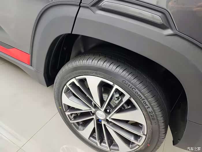 车身侧面线条十分硬朗,门板上适当的内凹营造了不错的光影效果,最大18英寸的铝合金轮毂将车身侧面填充的十分饱满,和车头呼应的一抹红色给车身侧面增加了不少英气,车顶银色行李架质感十足。4335mm*1825mm*1660mm的车身尺寸并不显小,2600mm的轴距保证了车身内部的乘坐空间。403L的后备箱空间看似不大,但是将第二排放倒后可获得950L的储物空间,还是相当可观的。