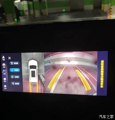 再回到全景影像上,操作也很便利,很多车需要挂R挡才能打开,小蓝呢,也可以通过方向盘左边的按钮打开,在起步、错车的时候一键就能打开,很实用,有一次从停车场出发,我就是通过全景影像,发现了车头下方的小猫咪。