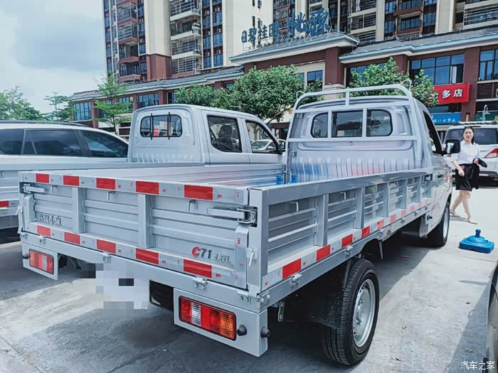 关于C71,也是多方的考量的结果,最满意的当然是动力和货箱长度啦,2.0的动力加上3.3米长的大空间,能让我们这些做生意的人少跑一两趟,也是为我们节约了成本了,我选择的是单排的,乘坐两人,内饰比较普通,不一样的是座椅采用三色设计,给整个内饰添了一抹亮眼,货箱空间大大的够,有时候装个两三吨也没有太大压力