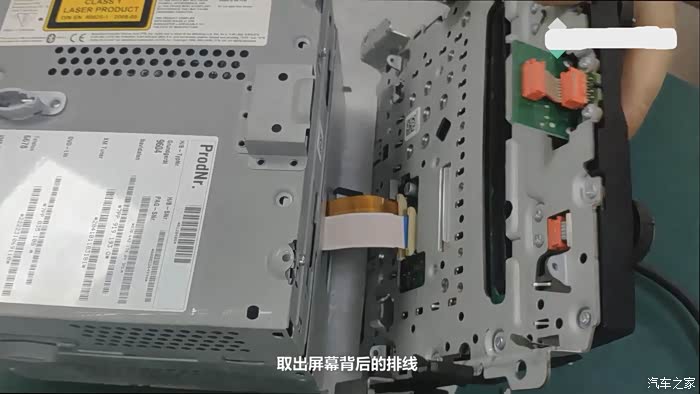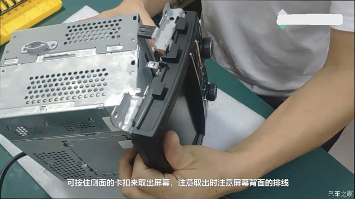 - 8.按住侧面的卡扣取出屏幕,注意取出时注意屏幕背面排线(如图