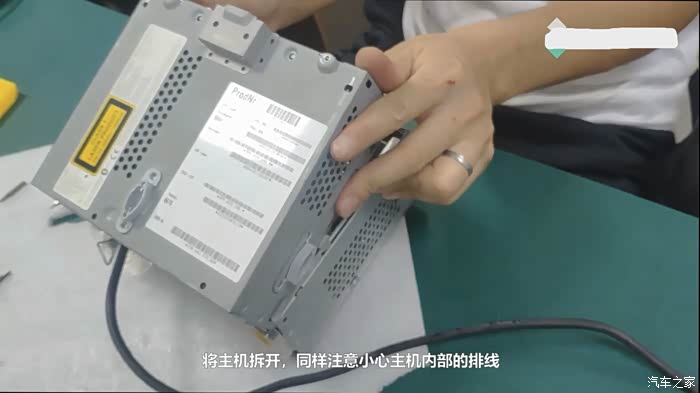 10.将主机拆开,同样注意小心主机内部的排线(如图)