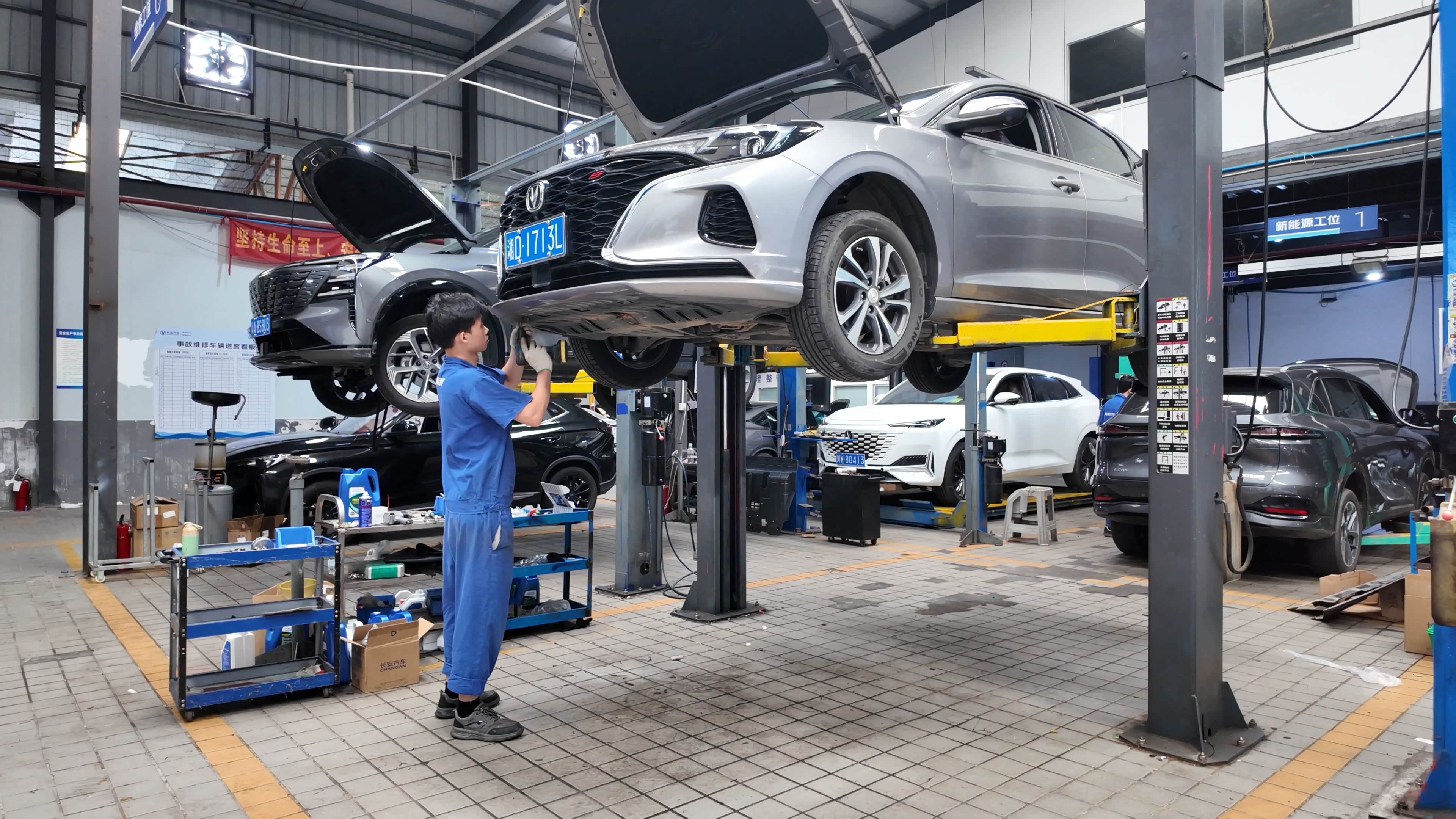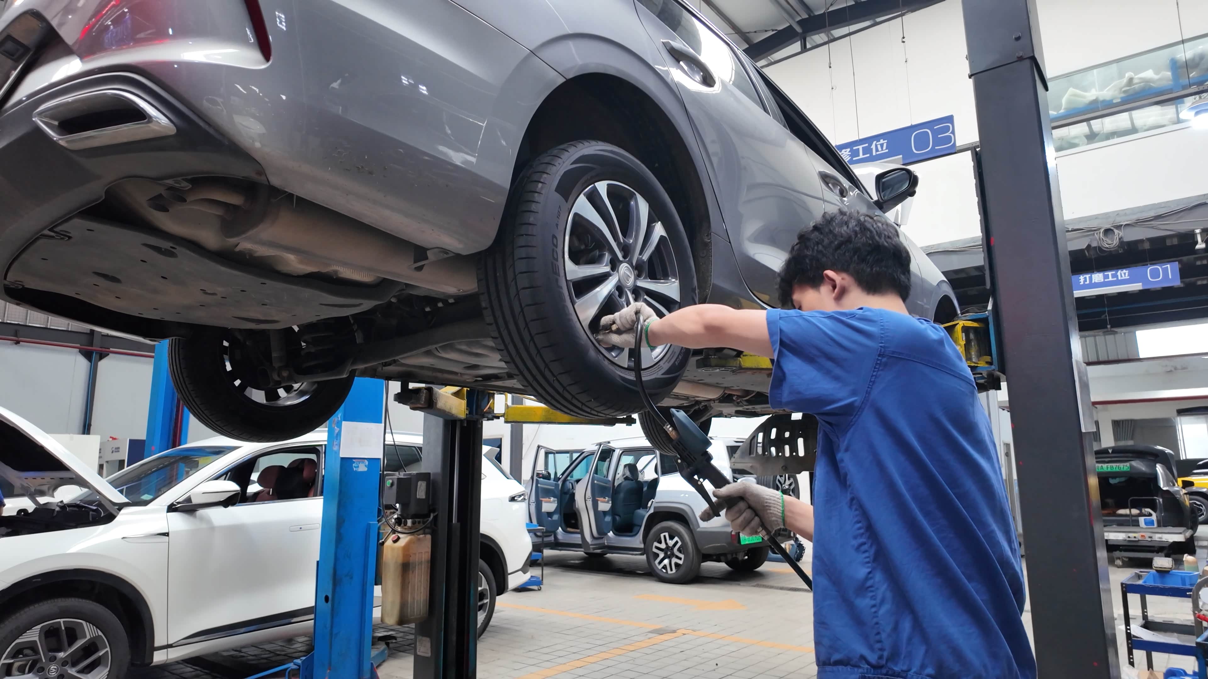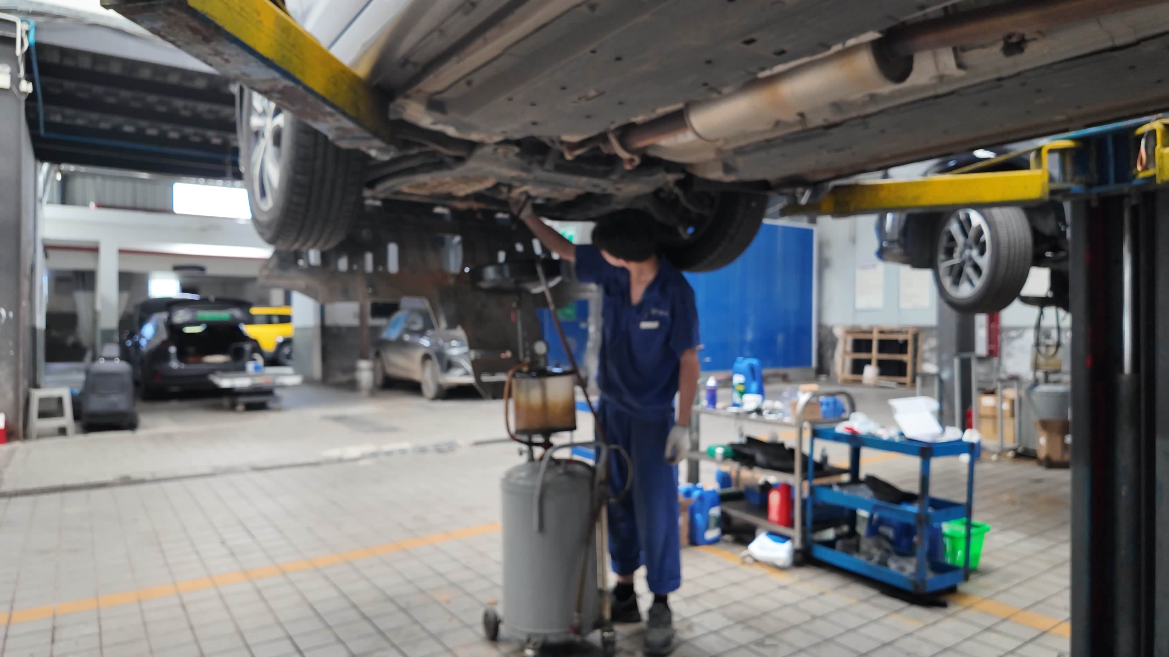 然后就是和服务经理确认保养内容:我车子里程不多,就选了基础保养。之前购车时买过“888元6年12次免费基础保养”的套餐,所以这次依旧免费。师傅施工时,我去了客户休息室,里面有零食、矿泉水,甚至还放了台球桌供消遣。更贴心的是,休息室有块维保进度屏,随时能看爱车保养到哪一步,不用瞎等。我们在屏幕里可以看到师傅的具体操作,看着师傅按照保养步骤一步一步的操作:首先将车辆顶起来进行轮胎,底盘等部件的检查,因为我的车辆有发动机护板,所以师傅在更换机油和机油格的时候需要先把护板拆下在进行后续的操作,护板拆下啦之后就是把旧的机油放出来然后再从机油加注口加注新的机油,同时也会把新的机油滤芯一起换掉。师傅完成所有的操作之后还会检查一遍,确保所有步骤都准确无误的完成了,这个地方让我感觉还是非常有责任心的。