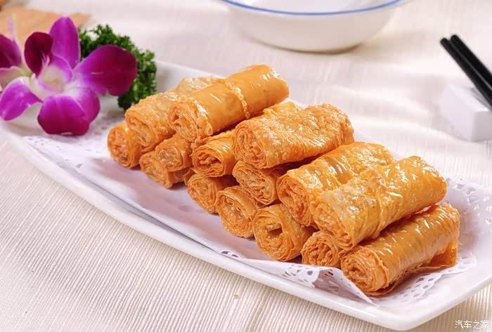 干炸响铃,以其薄如蝉翼的豆腐皮包裹着精细的肉末,炸至金黄酥脆。轻咬一口,外层的酥脆与内里的鲜香完美融合,是杭州小吃中的佼佼者。