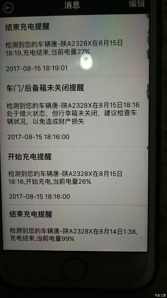 这一段时间,便携充电器在我两个充电的地方,都出现充电中断,无法再自动连接充电问题,注意壁挂充电正常,我怀疑是便携充电器故障,但上次在4s充电正常,未出现充电中断现像,昨天4s把店里的唐100便携充电器让我拿回家,试试,这一点我要为4s点赞!我们一起看了充电器型号,一样,结果我到家充电器时竞然插不上,提醒各位唐车主,唐80与唐100便携充电器不一样!,无奈我今天下午又把唐80开到4s店,晚上用我的原装便携充电器充电实验,我把遥控钥匙交给4s..用云服务锁车走人,坐公交车回家,刚到家,4s打来电话问你是不是锁车了,我们要用你的便携充电器,。我说不是给你们钥匙了吗?4s说,我把钥匙放你车里了。我说,没事,我用云服务开锁。打开云服务软件,点开锁,输入密码,卡察,开锁成功! 不然我去4s还要来回跑30公里。问题是,如果我到如果坐车到4s时.4s已经下班了,岂不误事?附近期云服务使用记录。