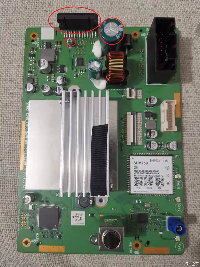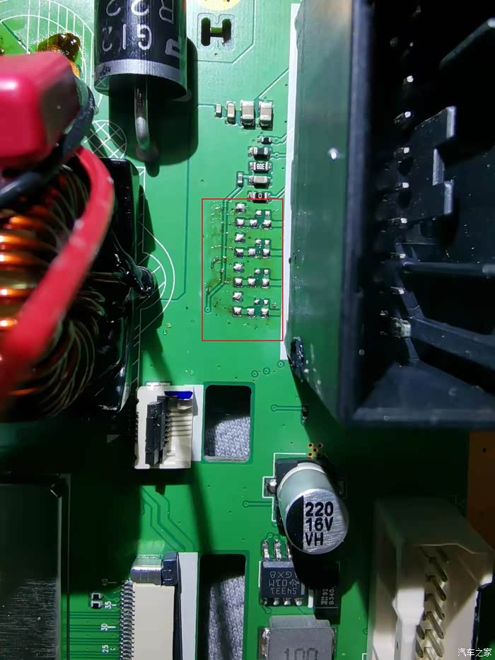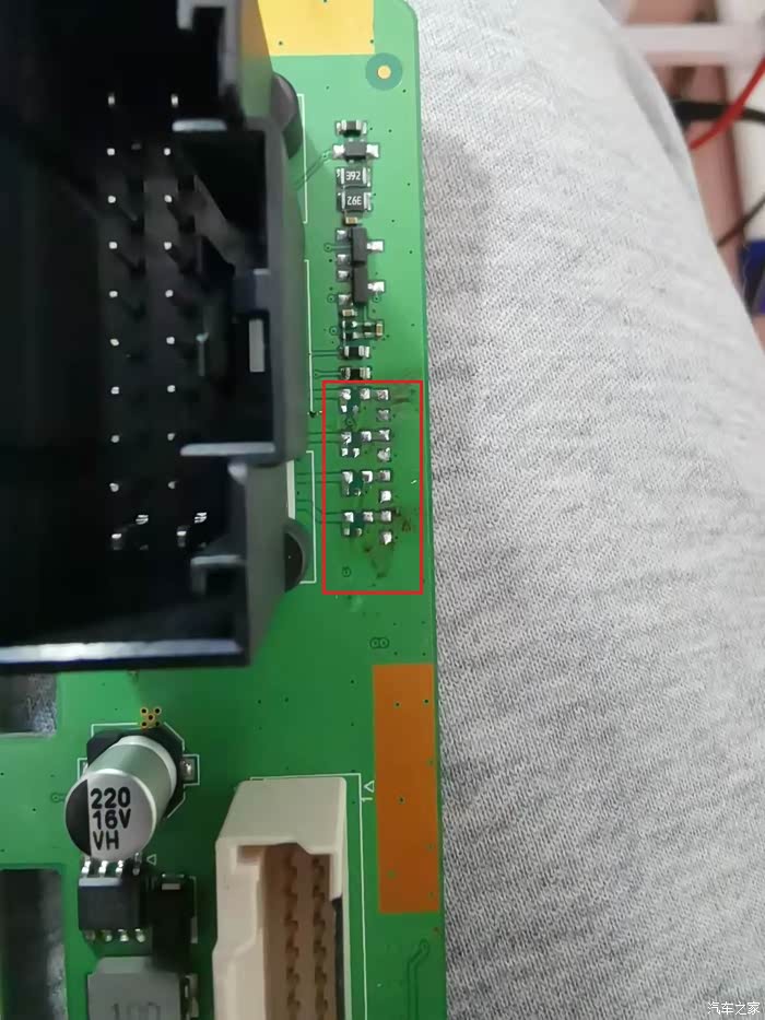 圈红的是需要拆下的。这是最花费时间的操作,因为主板使用的都是工业焊锡,普通温度不行。建议温度是450---500度 我用的是风枪 和电烙铁操作的。首先把芯片拆下然后把电容拆下。