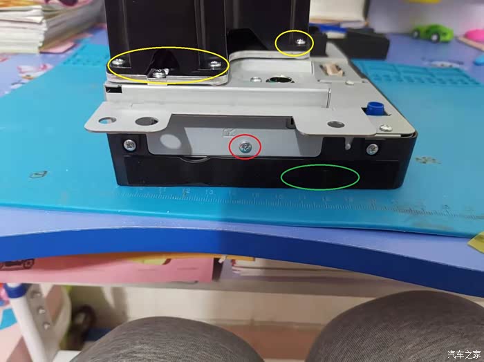 红色那个是长螺丝,黄色那些不用拆。 绿色胶布下暗藏一个螺丝注意下 螺丝拆的时候一定要记得位置。