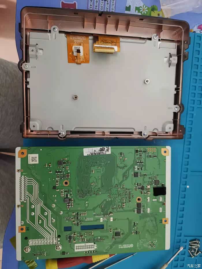 打开之后是这样的。把屏幕放在安全的地方别摔碎了。取排线时候一定要小心。取显示屏排线时把灰色卡口轻轻往前推,然后拔出排线,另一个窄的是触摸排线把卡口掀开,轻轻取出即可。