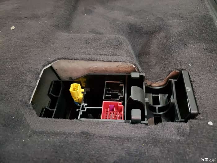 2)拿掉副驾驶脚垫,可以看到电池舱,打开盖板,按照下图试试;