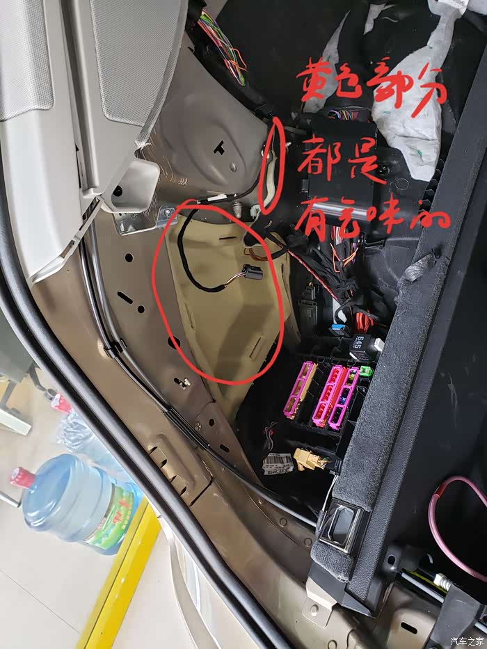 5)做了改装,改装店缺乏经验,布线或者做隔音时,让原厂地垫反面隔音棉***,臭味直接散发到车舱,浓度大增。原厂情况下,封闭得比较好,隔音棉基本没有***的,如果隔音棉气味不严重的,车舱内气味就不严重,很多车主能接受那种状况。