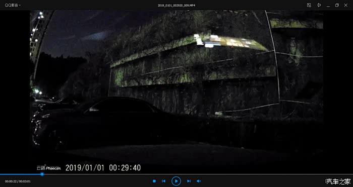 关闭车灯后,处于微弱光环境中,SONY IMX32整个画面一下都暗了下来,前方墙壁、车、垃圾桶轮廓都没办法看出。而SONY IMX307可以拍摄清楚前方物体轮廓,整体画面偏锐利,所以说选择感光芯片,不一定是索尼的就可以,还需要看是否支持无光夜视。