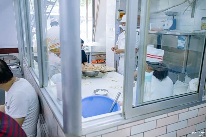 名字叫津门如意包子铺,大家按导航搜索即可。往来的人络绎不绝,6位老师傅在开放式的厨房马不停蹄的赶制包子。