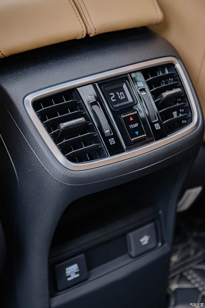 后排也有独立的分区空调,下面除了常规的USB,还有一个180瓦功率的点烟器接口,这简直就是自驾福音啊。像我这样经常自驾还需要在旅途中办公的人,太需要这样的接口给无人机和笔记本电脑充电了。