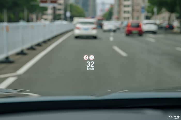 行走在市区走走停停的路面,改款后的9 AT变速箱有了明显的升级,变得更加平顺,换挡也十分的积极。抬头显示的内容非常丰富,包括该路段的限速,连不允许变道超车的标志都被识别出来了。