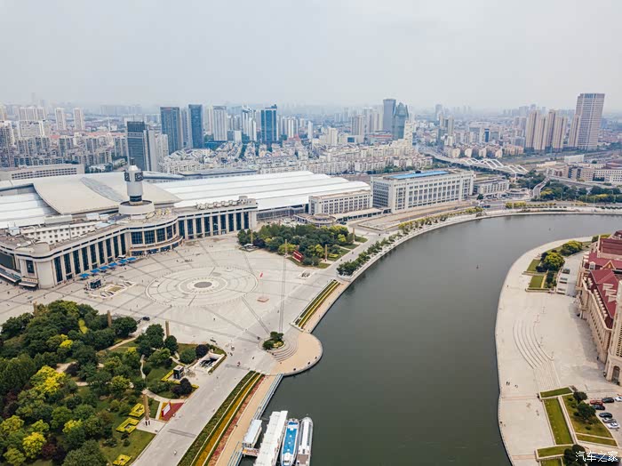 天津站的对面就是津湾广场,非常的整洁,从这张航拍里可以看到海河的水平面和岸边真的几乎是齐平的。