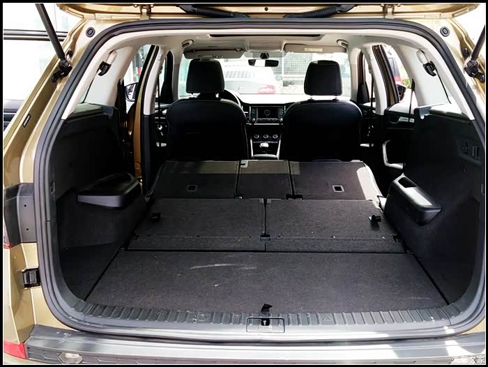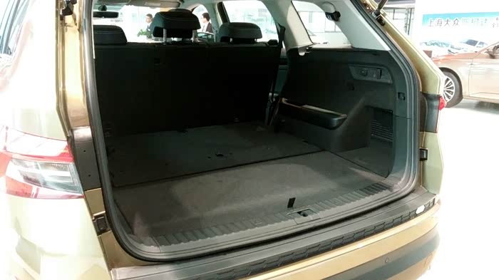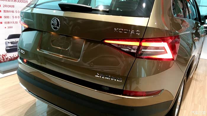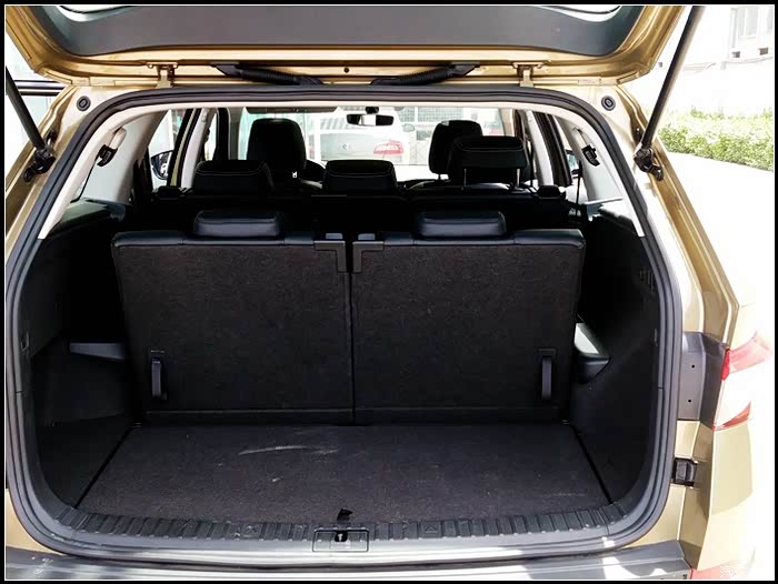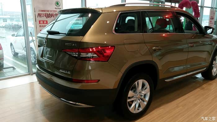 说来说去还是说说科迪亚克吧。斯柯达科迪亚克基于大众MQB模块化平台打造而来。跟同门大师兄途观L同平台。斯柯达科迪亚克基本延续了VISION S概念车的造型设计。前脸部分采用了前大灯和前格栅一体化设计,并且前大灯组内还加入了LED灯组,进气格栅采用了全黑色的镂空风格。从车头一直贯穿至车位的腰线,使车身侧面显得更为有利,车身侧面线条平直硬朗,车顶平滑的曲线也为第三排保留了一定的头部空间。车尾部分层次感很强,尾灯组采用C型LED光带造型,具有很强的视觉冲击力。车身尺寸方面,斯柯达科迪亚克的长宽高分别为4698*1883*1676mm,轴距达到了2791mm,在同级SUV中拥有最长的轴距和最宽的车身。除了常规5座车型外,柯迪亚克还有7座车型。满足不同选车客户的需要。,后备厢空间最大可达到2065L。整体实用性还是很高的。