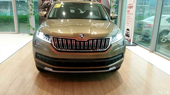 很早就关注科迪亚克了,作为斯柯达品牌小型SUV野帝之后,入华的首款中型7座SUV,柯迪亚克继承了全新家族风格设计,四叶草的家族化前脸。再加上自己个性的大灯等一些独特造型,识别度很高。很早就想看看实车,4s店总是说快到了快到了,等的都有点失望了。期间我去看了途观L,真心不错啊,外观,配置,动力......都没的说,就是价位有点高。