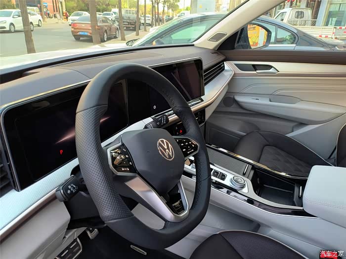 多功能方向盘,在高速上是很沉重的,在市区开车是很灵活的,控制方向准确,还有刹车踏板和油门踏板也都很好用,仪表盘是全液晶的,中控大屏的尺寸也还可以,功能都很多,实现起来很轻松